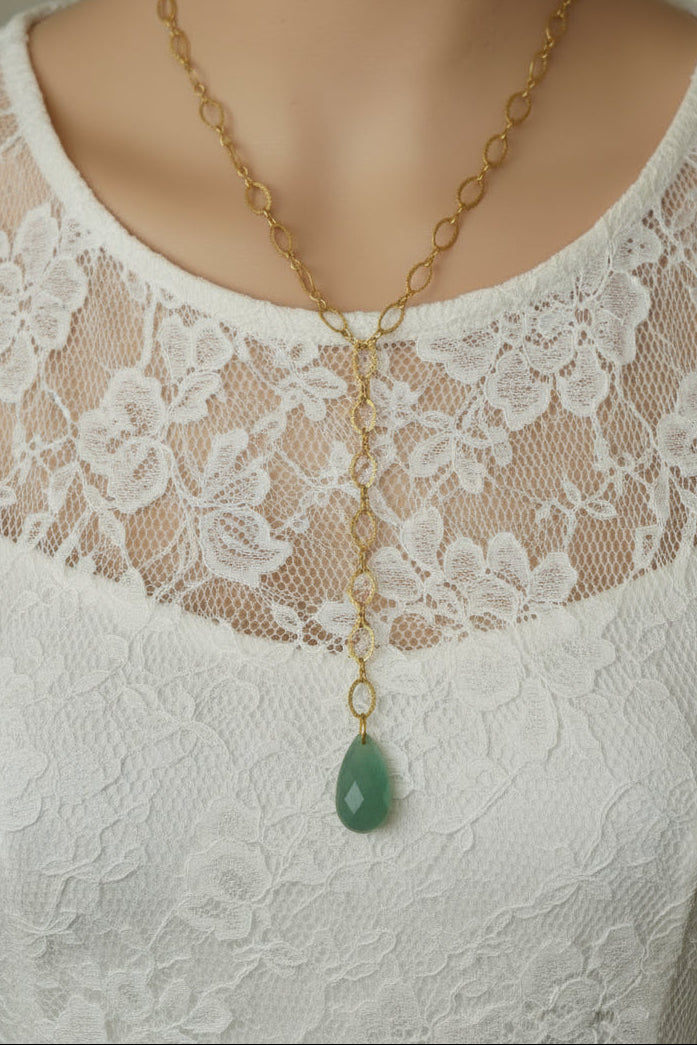 Perle facettée d'Aventurine montée sur chaine gaufrée en acier inoxydable. Pierre semi-précieuse.
