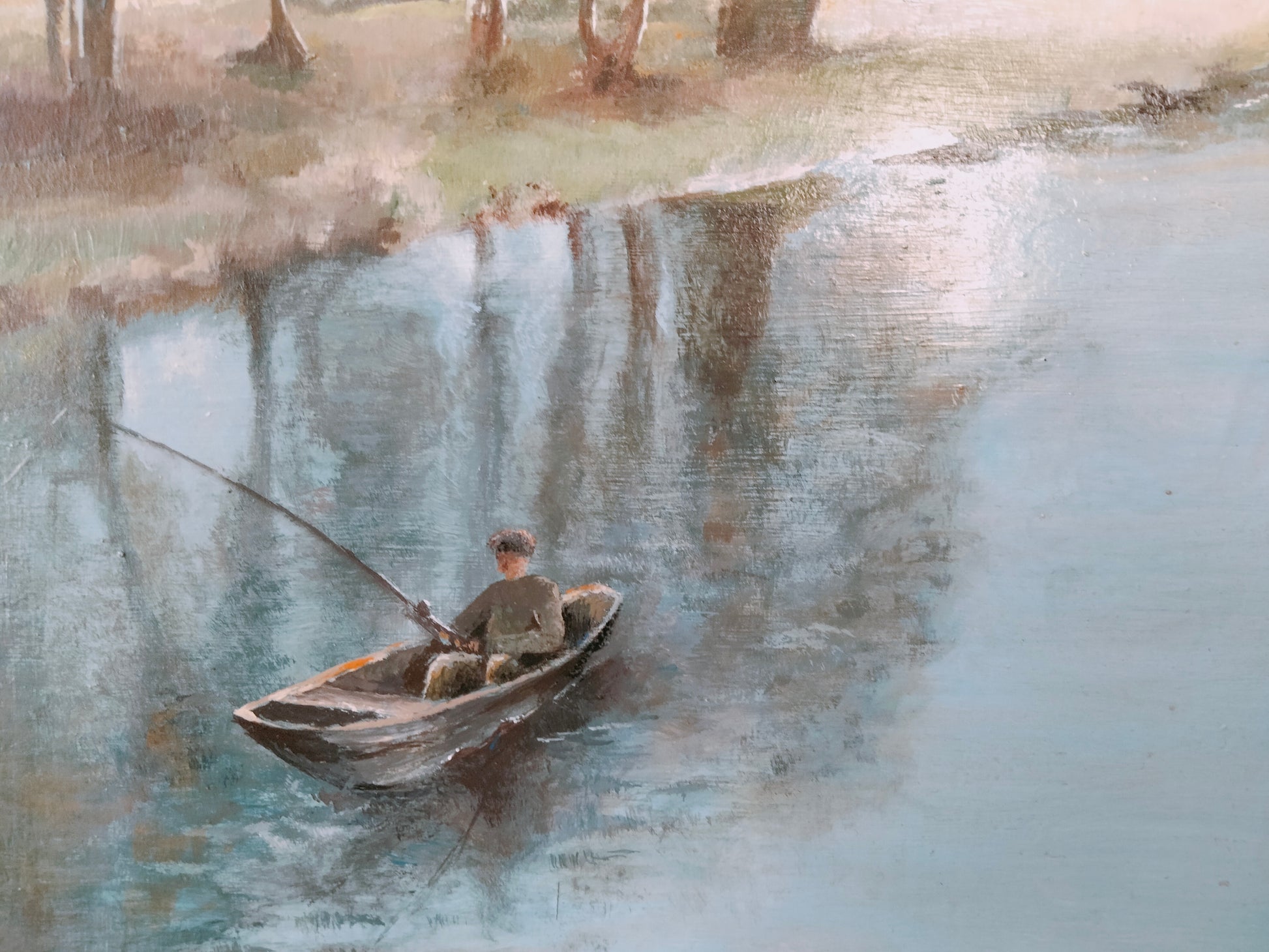 Acrylique sur bois représentant un paysage bucolique et automnal, à la façon des Impressionistes.