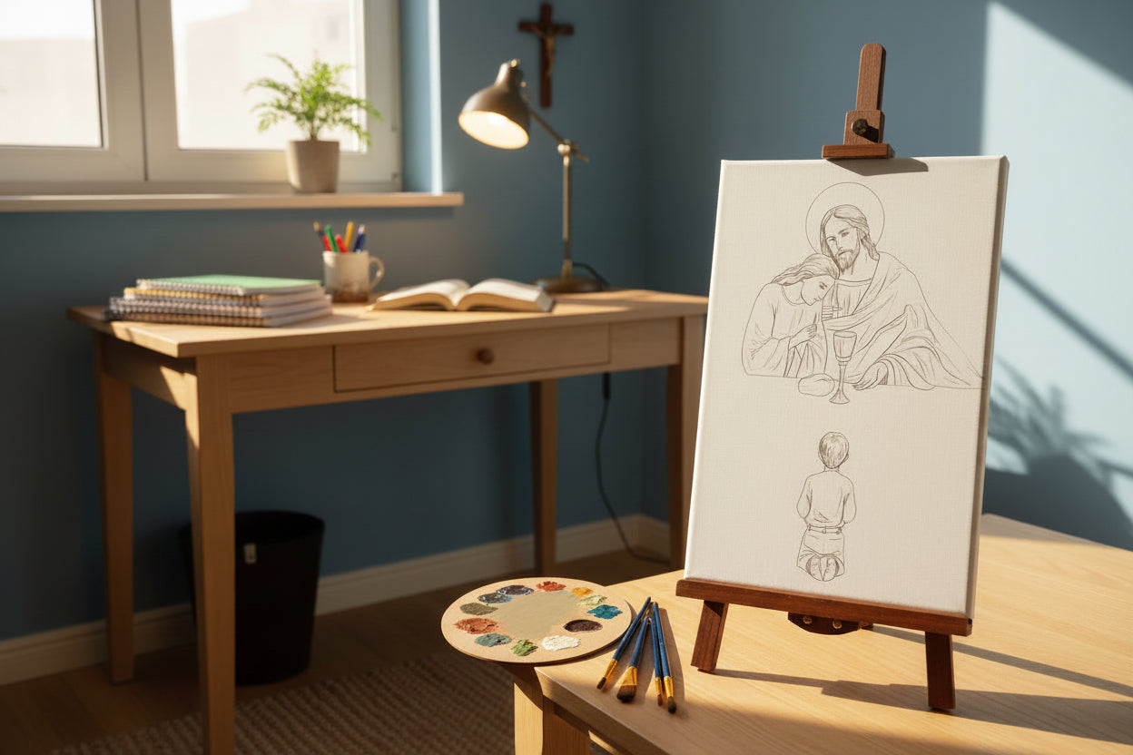 Votre enfant aime les loisirs créatifs, le dessin, la peinture? Offrez-lui cette toile à peindre, souvenir de sa Première Communion, qu'il pourra peindre lui-même et conserver précieusement dans sa chambre.
